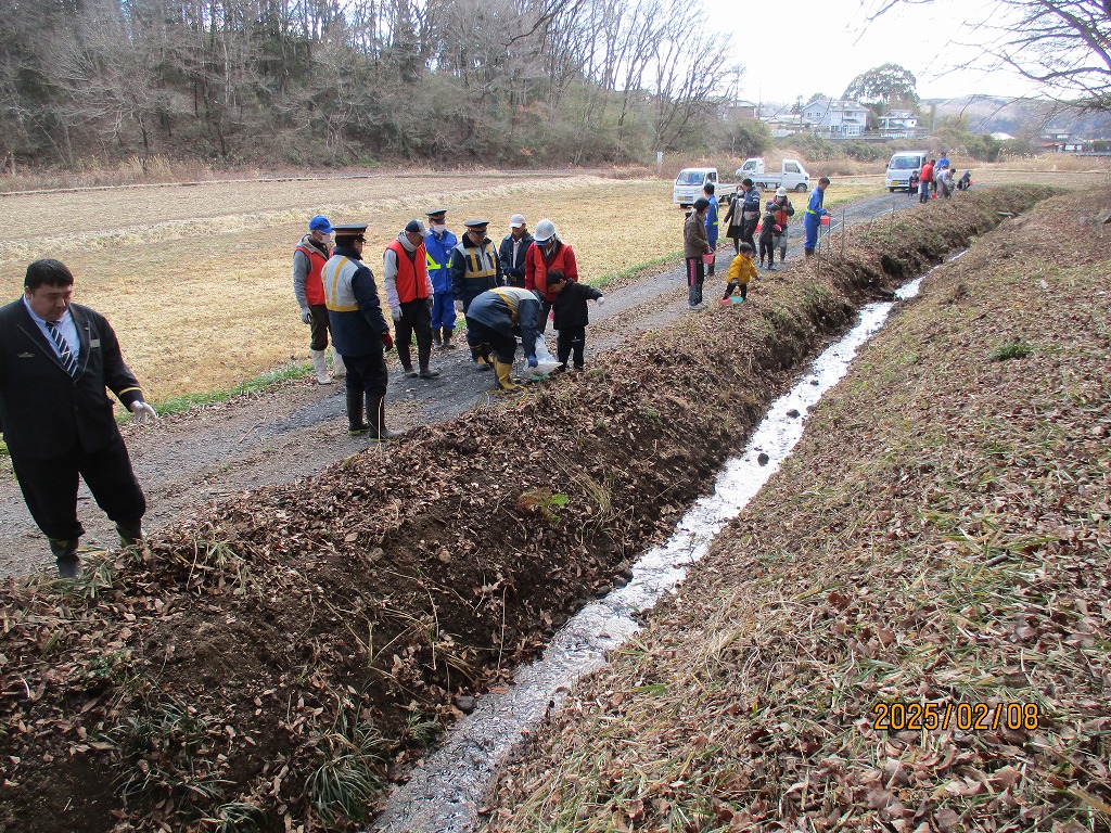 ホタル資源保全のための土水路の清掃(保全会員+JR東日本社員+協力者)