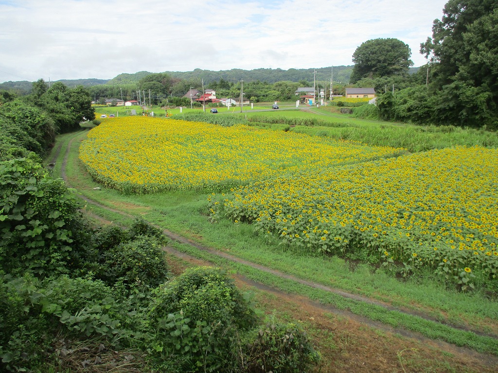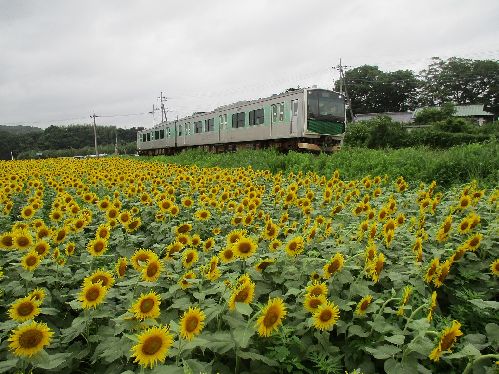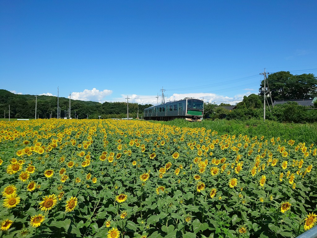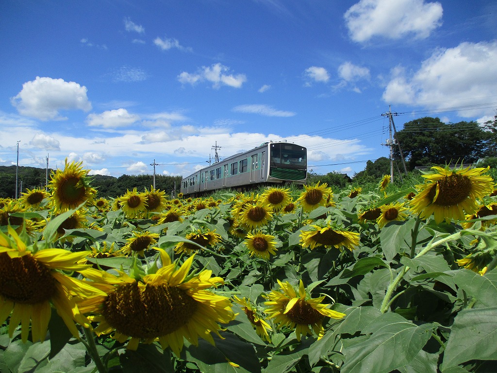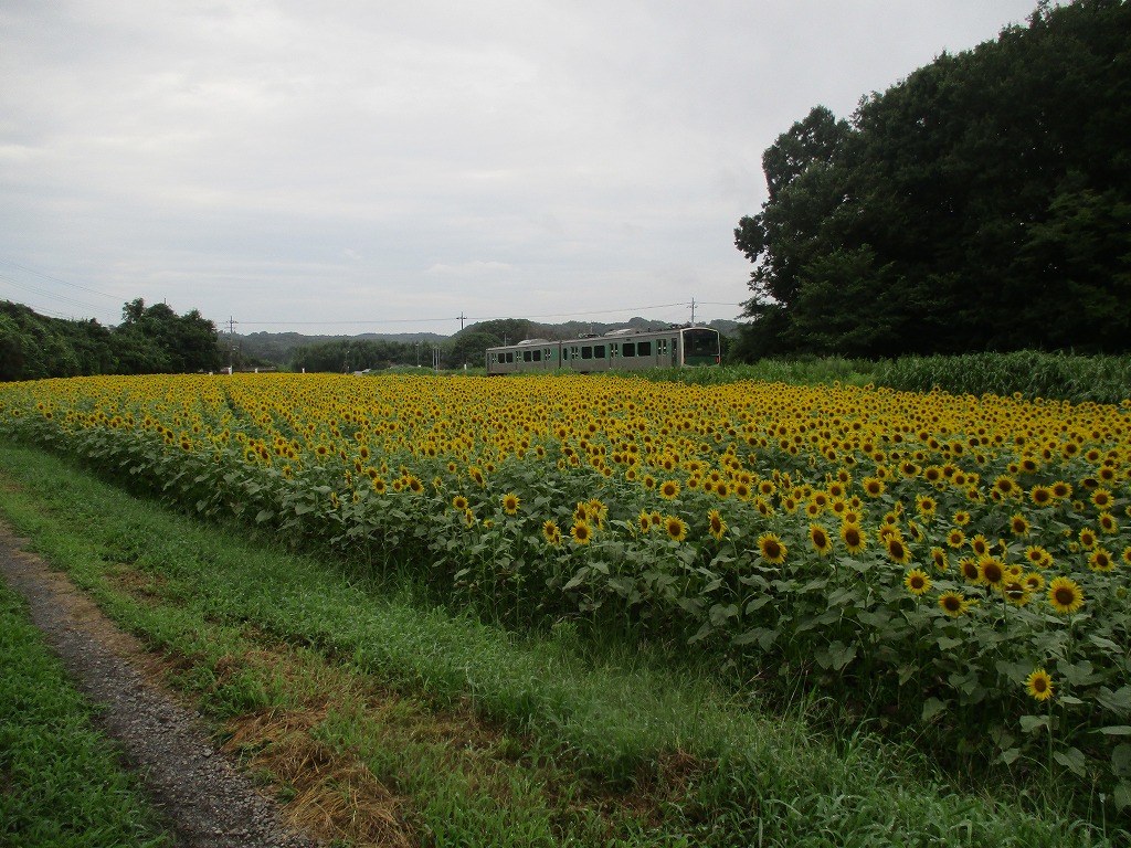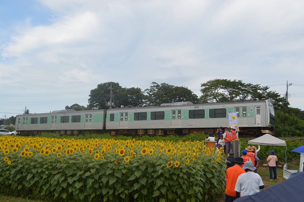 JR烏山線のアキュムの車窓から見るヒマワリも格別です。