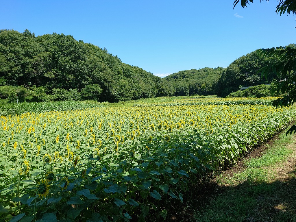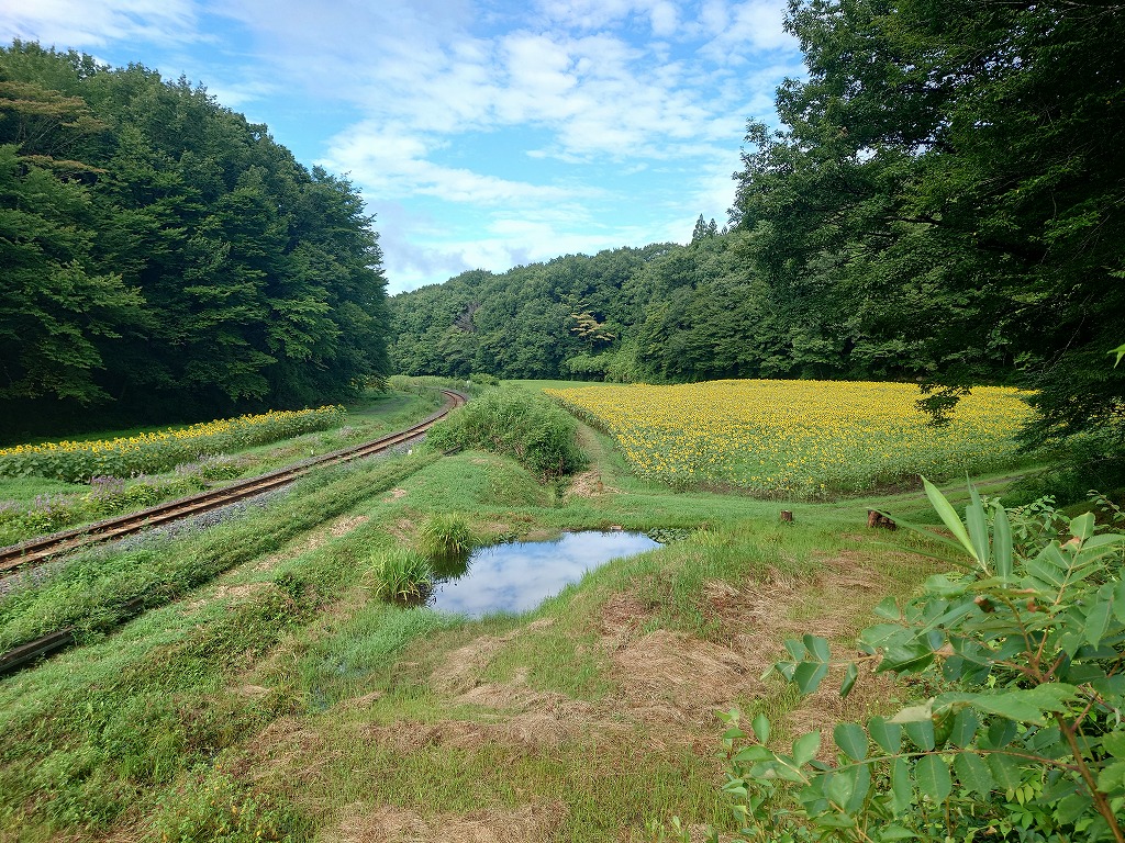 線路沿いの谷津田50a(5,000㎡)が新たに増えたことで、段々になったヒマワリ畑とそこを走るアキュムを見ることができます。面積が増え一部ぬかるみがありキツイ作業となりましたが、最後まで種蒔き作業を頑張っていただきました。参加された皆さん大変お疲れさまでした。開花が楽しみです。